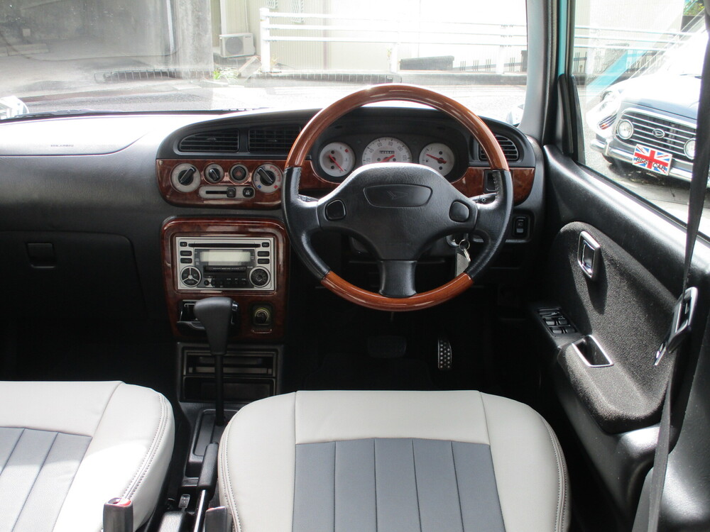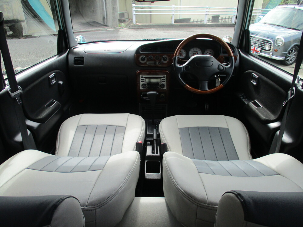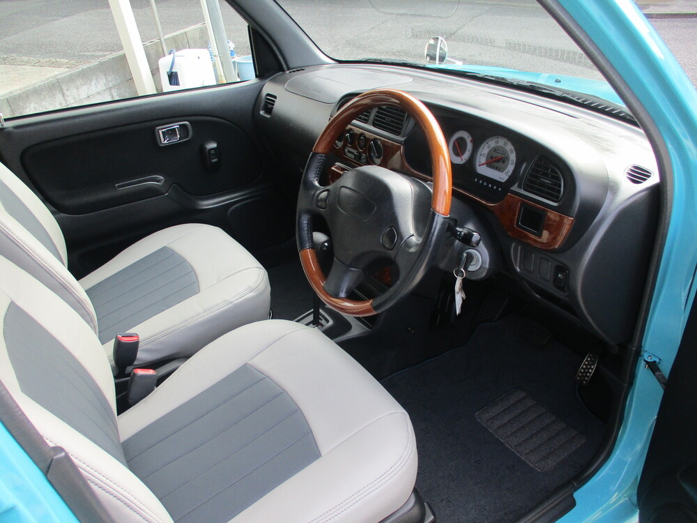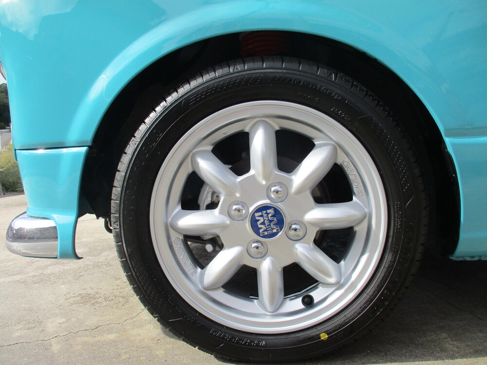 専門店ならではの安心の充実整備&徹底仕上げ!色替NEWペイント オリジナルカスタマイズ サーフブルーver.!ミニライト14in.AW ローダウン フェンダーミラー センターマフラー(シングル) ウッド調インテリア 専用シートカバー&フロアマット!禁煙車です!ぜひ店頭でご覧になってください!